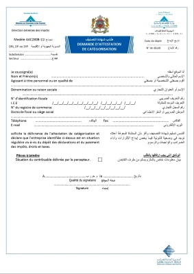Modèle de demande d’attestation de catégorisation fiscale au Maroc : (clique sur télécharger maintenant)